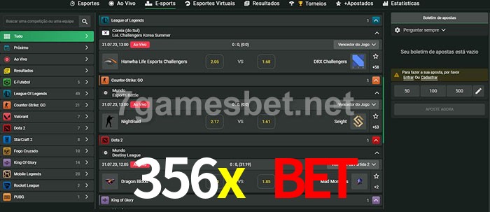 A aposta 356x bet oferece aos jogadores a experiência mais conveniente de apostas em eSports!